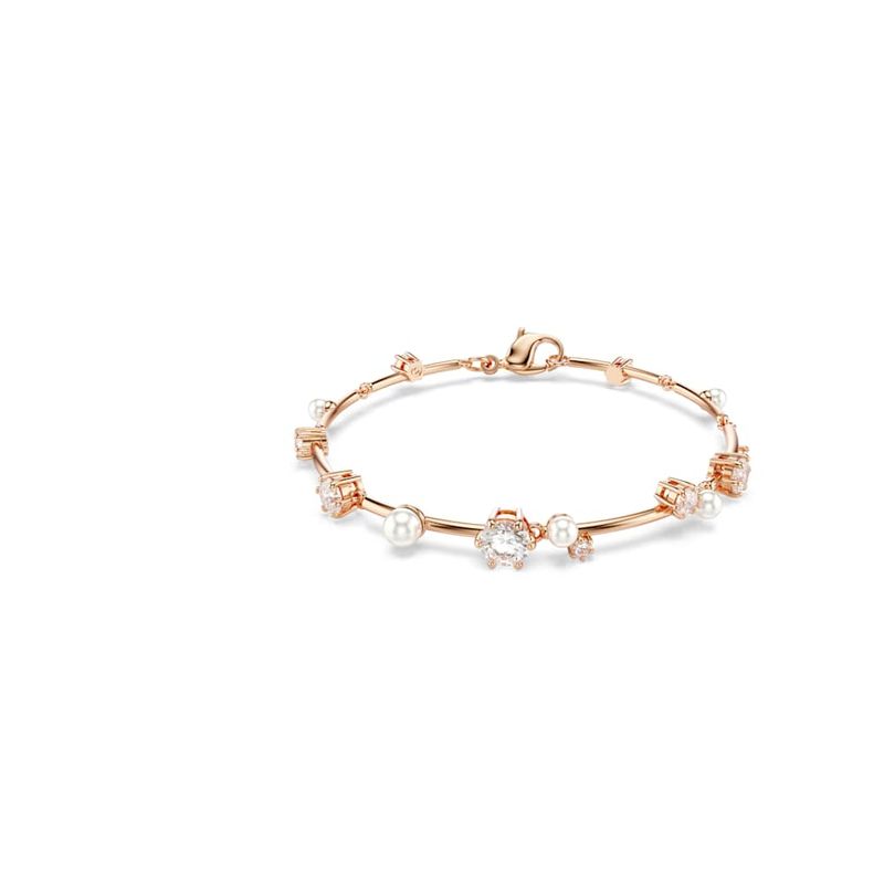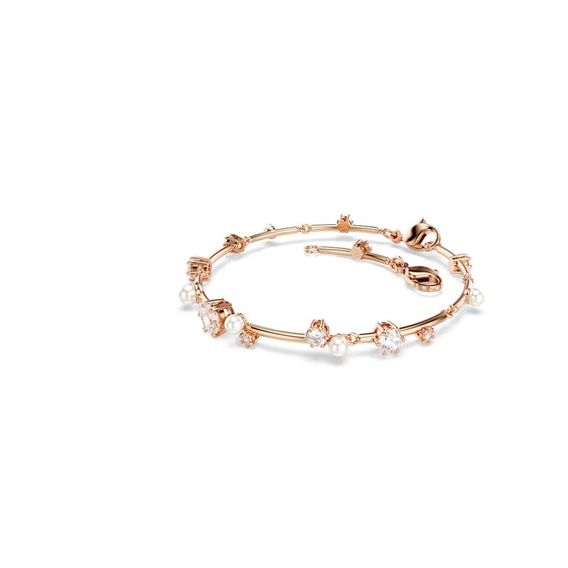 BijuteriasPulseirasPulseiras RígidasBracelete Tennis Constella, Crystal Pearl, Lapidações redondas, Branca, Revestido em rosa dourado